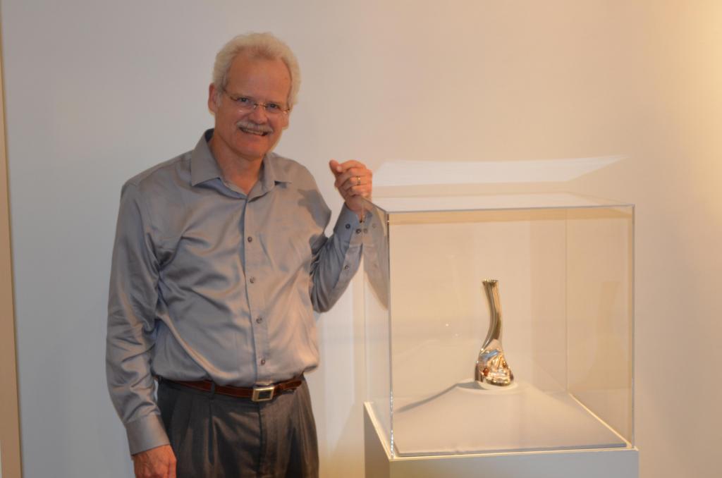 In early May, 2015, the Beaux-arts des Ameriques Gallery in Montreal hosted an exhibition of 15 works by the 15 new inductees into the Royal Canadian Academy of Arts (RCA). I was very honoured to be one of the artists inducted into the RCA in 2015. I am seen here beside my Stem Vase with Textures on display at the Beaux-arts des Amerique Gallery.