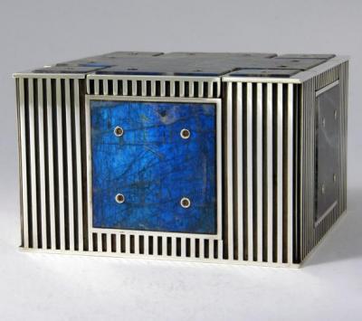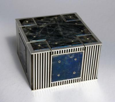 Architecturally inspired -- a floortile pattern on top when the lid is place, and a castle or fort-like appearance to the box when the lid is removed.